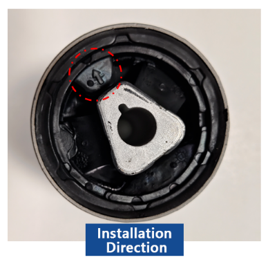 تنصیب کے دوران، یقینی بنائیں کہ بشنگ کا ٹھوس (غیر تقسیم) حصہ گاڑی کے سفر کی افقی سمت کے ساتھ منسلک ہے۔ اگر جھاڑی میں ایک اورینٹیشن ایرو ہے، تو اس تیر کو سفر کی سمت کی طرف اشارہ کرنا چاہیے۔
