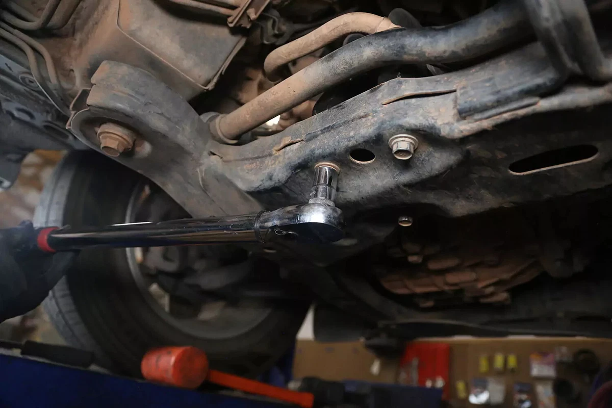 چیسس ماؤنٹ بولٹ اور کراس بولٹ کو سخت کریں۔ فیکٹری چشموں میں بولٹ کو سخت کرنے کے لیے ٹارک رینچ کا استعمال کریں۔