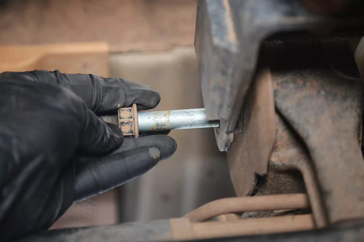 ہماری ڈیمو گاڑی میں کراس بولٹ ہے، جسے ایک طرف رنچ اور دوسری طرف ساکٹ کا استعمال کرتے ہوئے ہٹایا جاتا ہے۔ تنگ کوارٹرز میں ان کو ہٹانا مشکل ہو سکتا ہے۔ مطلوبہ فائدہ حاصل کرنے کے لیے بریکر بار، امپیکٹ رینچ، یا چیٹر بار کا استعمال کریں۔